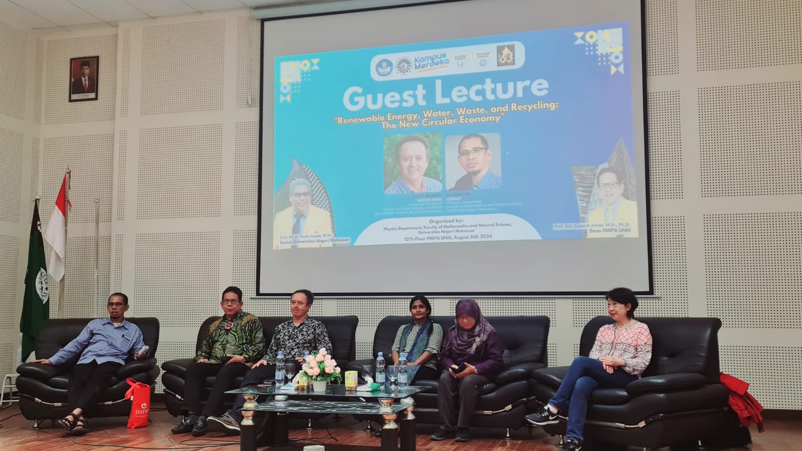 Makassar, 31 Agustus 2024 – Jurusan Fisika, Fakultas Matematika dan Ilmu Pengetahuan Alam Universitas Negeri Makassar (UNM) sukses melaksanakan kegiatan Guest Lecture dengan tema Renewable Energy, Water, Waste, and Recycling: The New Circular Economy dengan menghadirkan Prof. Martin Anda (Murdoch University, Perth Australia), Prof. Tania Urmee (Murdoch University, Perth Australia), Prof. Jacqueline Lo (Murdoch University,...Read More
