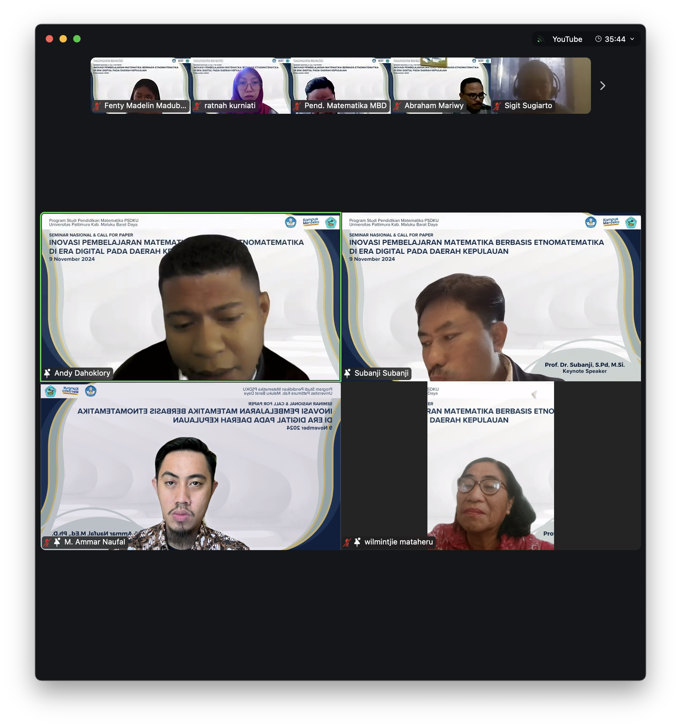 Maluku, 9 November 2024 – Program Studi Pendidikan Matematika PSDKU Universitas Pattimura Kabupaten Maluku Barat Daya sukses menggelar Seminar Nasional bertema “Inovasi Pembelajaran Matematika Berbasis Etnomatematika di Era Digital pada Daerah Kepulauan.” Acara ini diselenggarakan secara hybrid, dengan partisipasi offline di Aula PSDKU Universitas Pattimura dan secara online melalui platform Zoom. Salah satu pembicara utama,...Read More